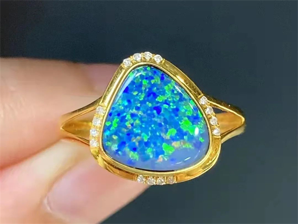 而在半宝石欧泊身上,你能看到红宝石的火焰,紫水晶般的色斑,祖母绿般的绿海,五彩缤纷,浑然一体,美不胜收。