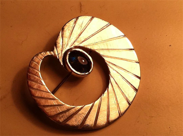 然后我就设计是一条条阶梯路围绕成一个圈中间镶嵌一颗母亲的生日石欧泊的胸针。设计的理念是孤寡的妈妈一生就是一步步艰辛的向前走过来带着她们几个孩子长大成人,然后就是生命轮回的一个轮的造型,那镶嵌的欧泊就是她的生日石,是她生命起点光。