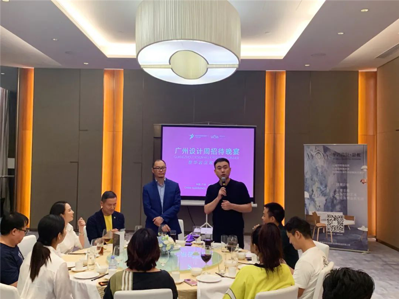晚宴在广州设计周项目总监彭伍先生的轻松致词下拉开帷幕,他向晚宴的来宾们表示热烈的欢迎,并表达了广州设计周对金住奖的期许,对居住空间设计的关注和希冀。随后他表示最近被华岩品致「立足东方,放眼世界」的国潮岩板品牌理念深深吸引,并邀请华岩品致副董事长郭聪先生上台作分享。