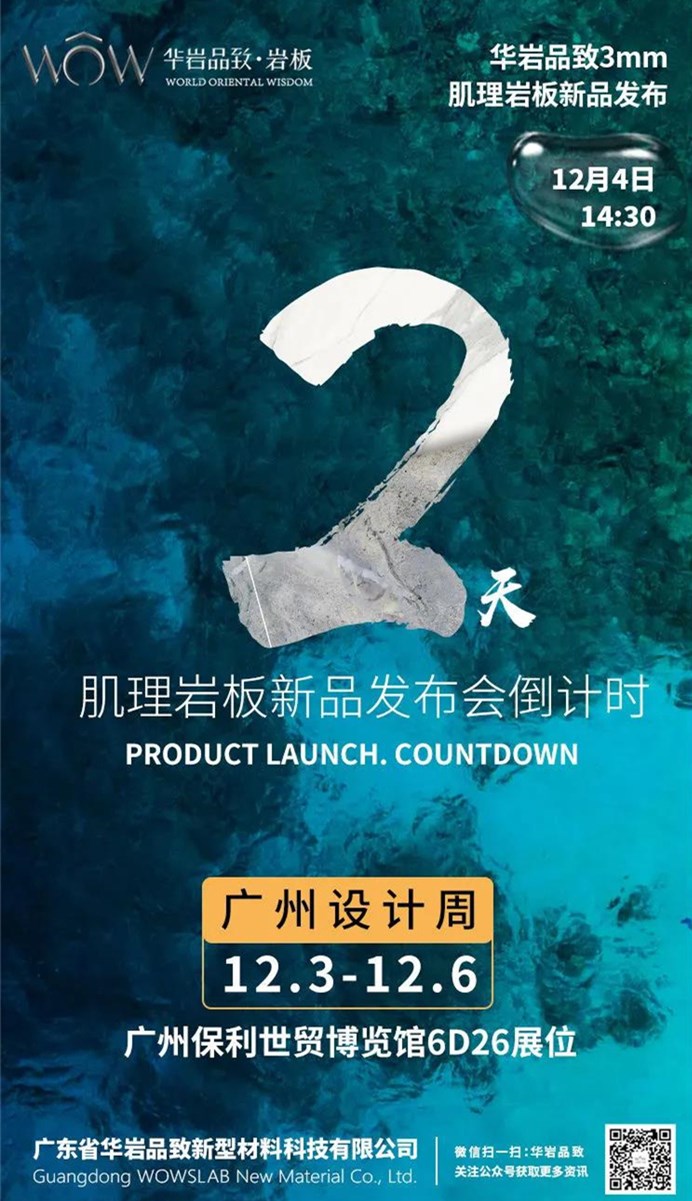 开创岩板新品类先河的3mm肌理岩板成品,将于12月3-6日出现在广州设计周国潮肌理岩板领创者华岩品致岩板的展位——保利世贸展览馆6号馆6D26。