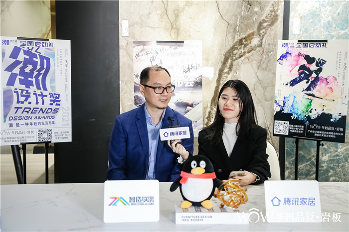 郭聪:对,这个潮设计奖是今天早上在二号馆我们和设计周一起来共同启动了。那么明年,我们会在全国几百个城市来展开落地。这个潮设计奖的宗旨是给更多的设计师一个发挥的舞台。每一个设计师对潮和对设计都有不同的理解,我们认为这种潮或者潮的设计是可以没有边界的,是可以先锋的,是可以引领的,也是可以通过传统的元素重新带回到我们这个现代的设计里面去的,令它再次成为与众不同。所有的这些在潮设计里面可能都是多元化,大家有不同的标准,但是有一个共性的地方,就是潮设计代表了一种年轻的生活方式。所以通过潮设计奖,我希望更多设计师能够带来更多好的作品,给终端的用户带来更多年轻的作品,带来更多引领的、先锋的作品。只要设计师有这种年轻的心态,我觉得就可以参与到这个奖项里面来。同时,这也跟我们华岩品致本身的一个品牌主张是非常和吻合,我们是要做一个世界的东方,做国潮岩板。这里有个小花絮,我们也知道广州设计周为了这个奖项一直在斟酌,酝酿了很多年,那么现在他们有一个很好的时机来推出,我们也刚好有这样的一个契机跟他们结缘,我觉得这是一个非常好的事情。