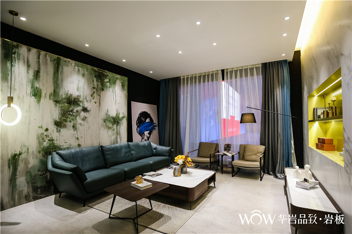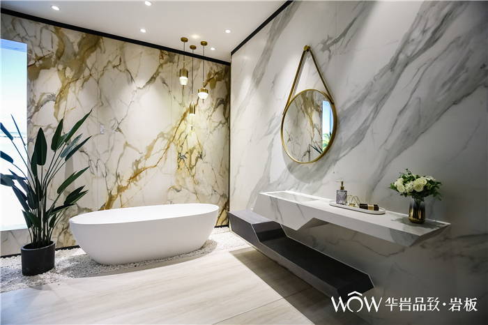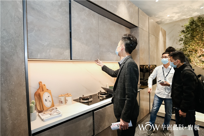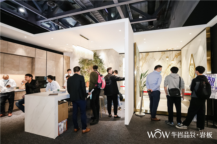 郭聪:大家都知道现在岩板是一个风口,有很多企业都在岩板,我觉得这是好事,大家一起来共同来更加推动这个事情,也更加推动这一个产业。但是我觉得每一个企业在这个产业里要抓住这个风口,成为这个风口里的优胜者,那它是需要有一定的实力的。那这样一个实力,包括他的品牌实力,还有他产品的差异化。所以在这一次设计周上,我们华岩品致也带来3mm肌理岩板的一个新品发布。同时我们在这个展位的设计上面,我们也更加注重场景的一个打造,就像设计周的金住奖有一句话是“不只是用来看的,更多是用来住的”。所以我们构建的五大场景里,希望每一个场景可以给到设计师朋友,给到我们终端用户朋友,能够让他们认识到原来岩板可以打造成这样的一个空间,能够带来这样的一个感受。所以我们这一次不是做了一些概念上的虚的东西,而是我们做了很具体的场景,更多地呈现各种元素与岩板的结合。通过这样一个打造,让我们的设计师和用户看到,并且清晰知道原来岩板也可以营造出这样的一个充满家的感觉的空间,这样一个美的空间。这就是我们这一次整个展位设计的一个宗旨。