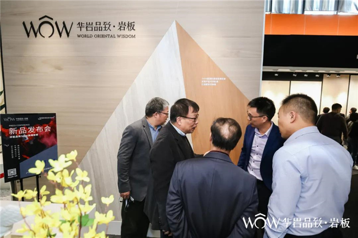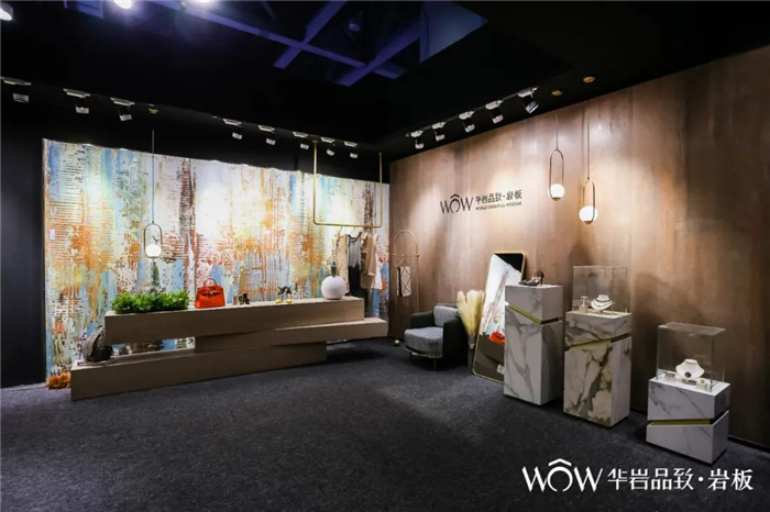 超高人气的华岩品致展位,不但呈现高颜值的空间展位设计之外,展会期间还重磅发布了岩板新品类——首创3mm肌理岩板,震撼开创岩板新品类先河。